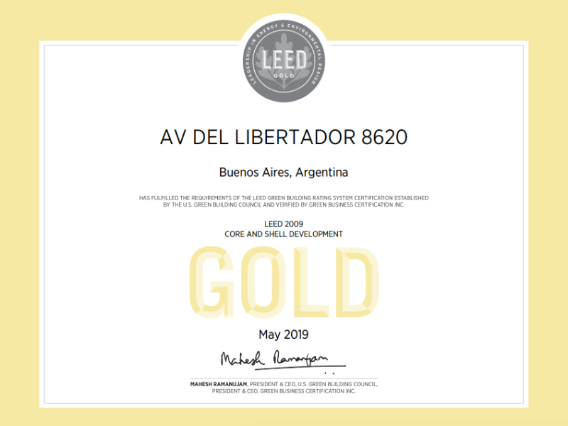 Libertador 8614 is a building that provides innovation for sustainability and efficiency. Integrating aspects to achieve more efficiency, the project provides greater performance with minimal resources, so the project has been awarded with the Gold LEED Core and Shell certification.