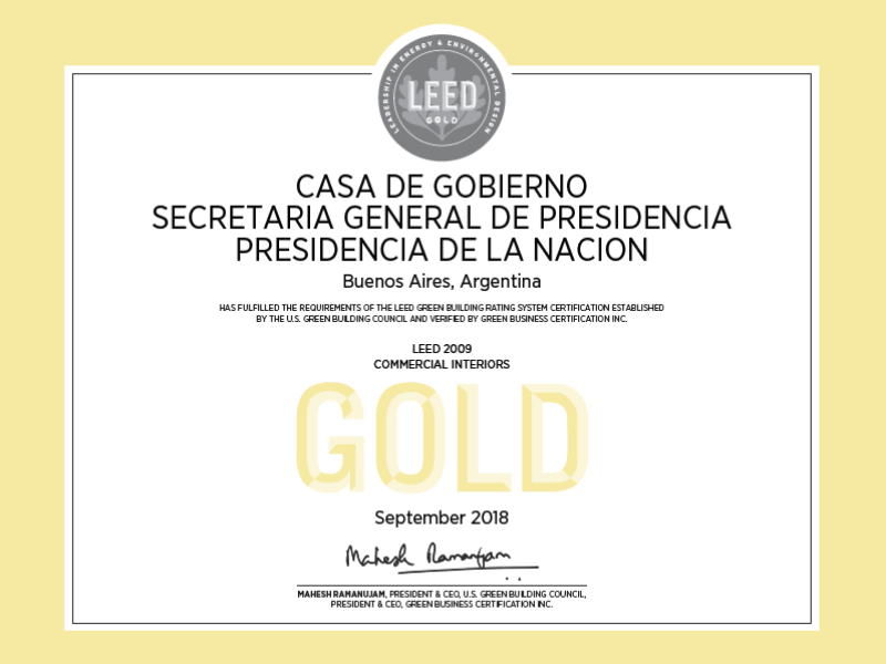 The project was about the partial remodeling, retrofitting and enhancement of the second floor of the Government House building (Casa Rosada) located in the center of the city of Buenos Aires. It includes an office area of 21,250 sqft.